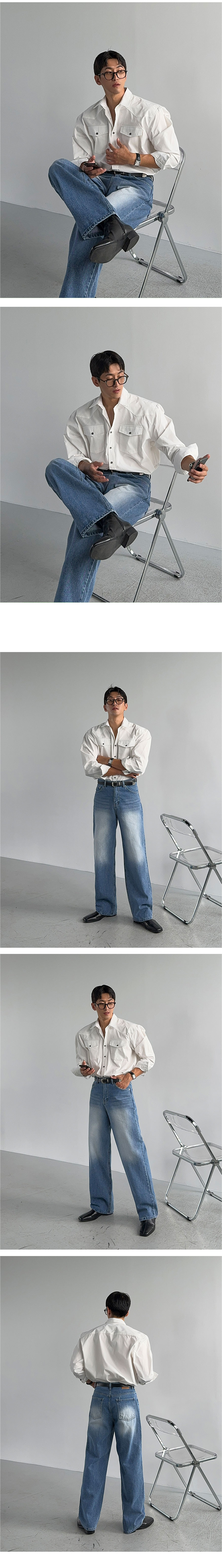각을 살려주는 원단과 웨스턴 디자인으로 남성적인 무드를 담은 셔츠.