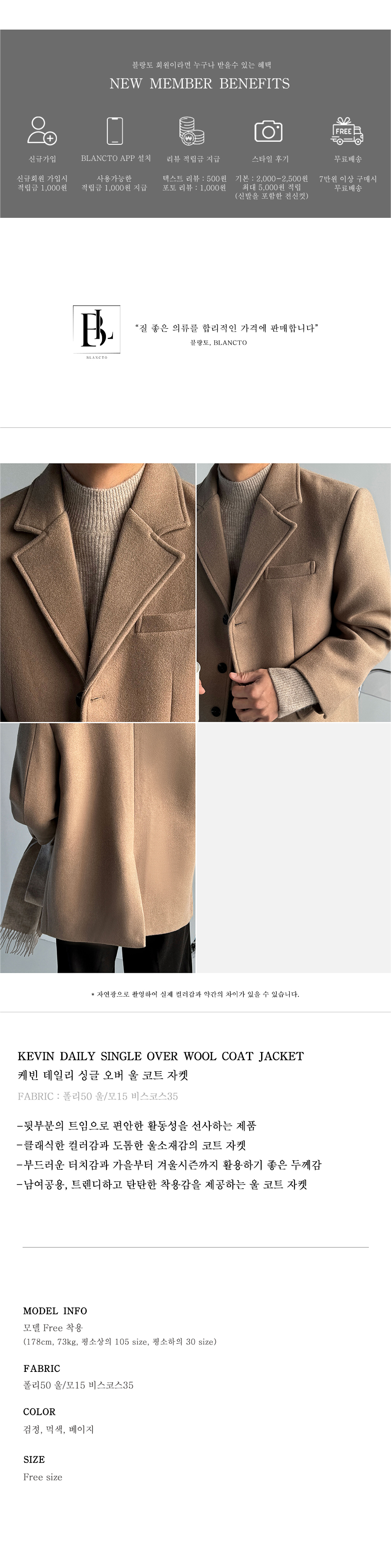 케빈 데일리 싱글 오버 울 코트 자켓 3color
