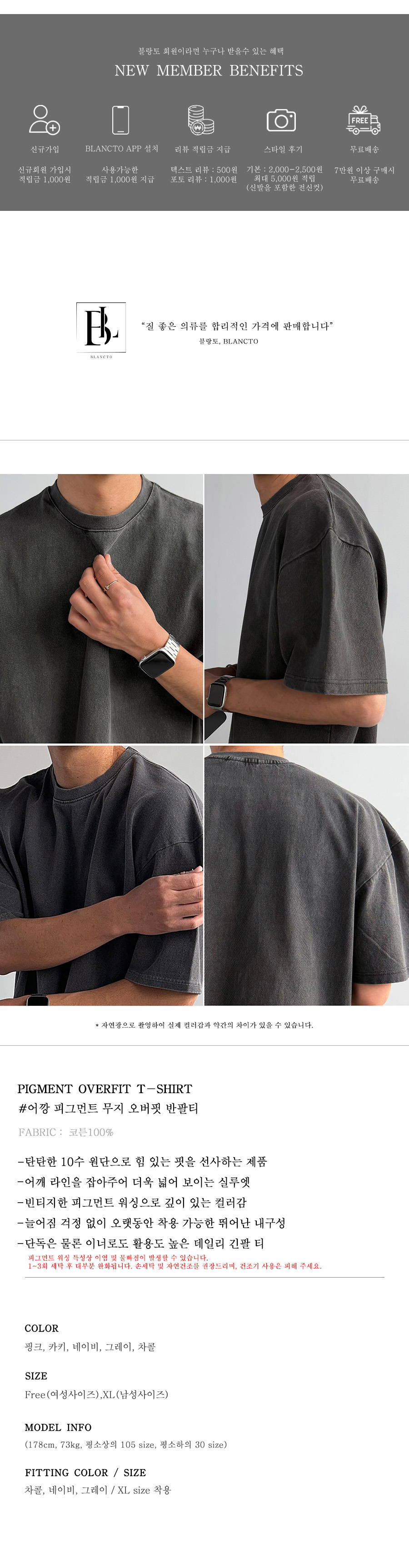 Color 옵션 선택 차콜 그레이 카키 네이비 핑크