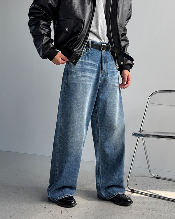 프리미엄 바이슨 워싱 와이드 데님 팬츠 4color