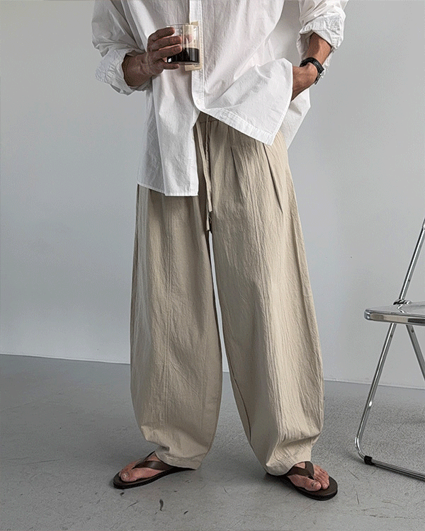 루아 코튼 원턱 하프밴딩 팬츠 4color