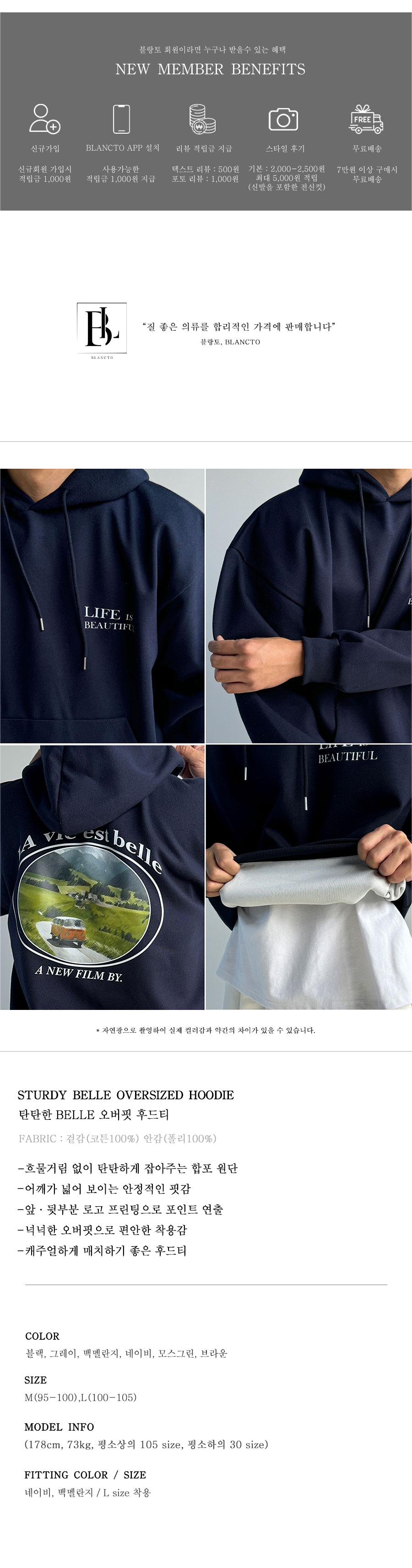 탄탄한 BELLE 오버핏 후드티 6color
