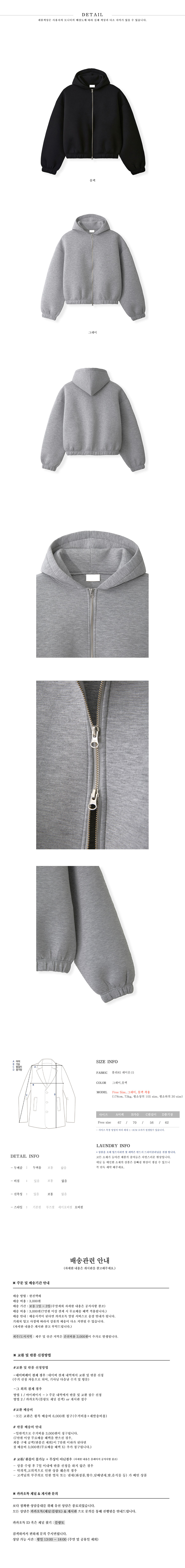프리미엄 어깡 크롭 오버핏 후드집업 2color
