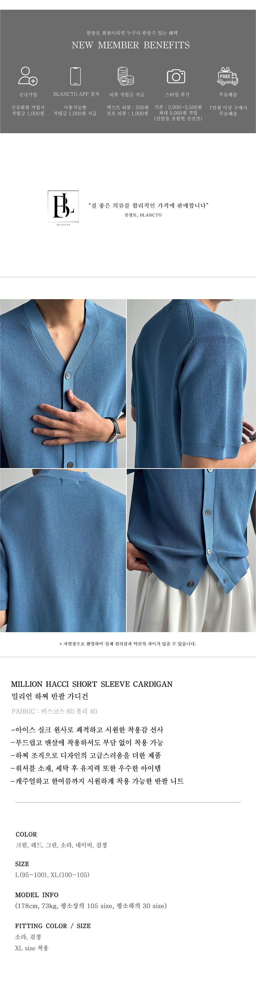 "아이스 실크 원사"로 한여름까지 시원하게 착용 가능하며 하찌 조직으로 고급미를 살려주는 제품.