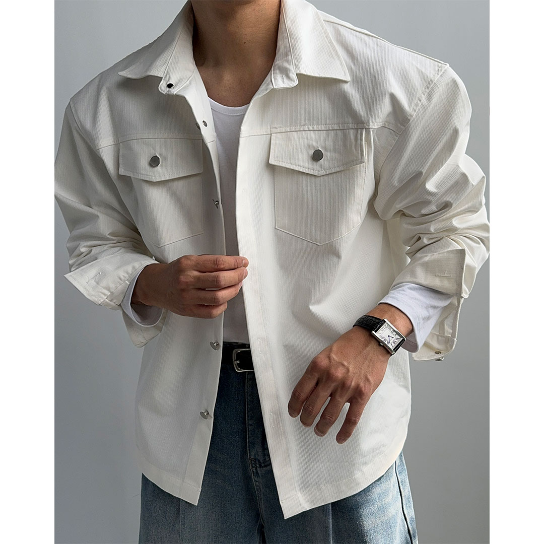 프리미엄 데님 원단에 은은한 스트라이프 패턴이 더해져, 남성적인 무드를 살려주는 셔츠.