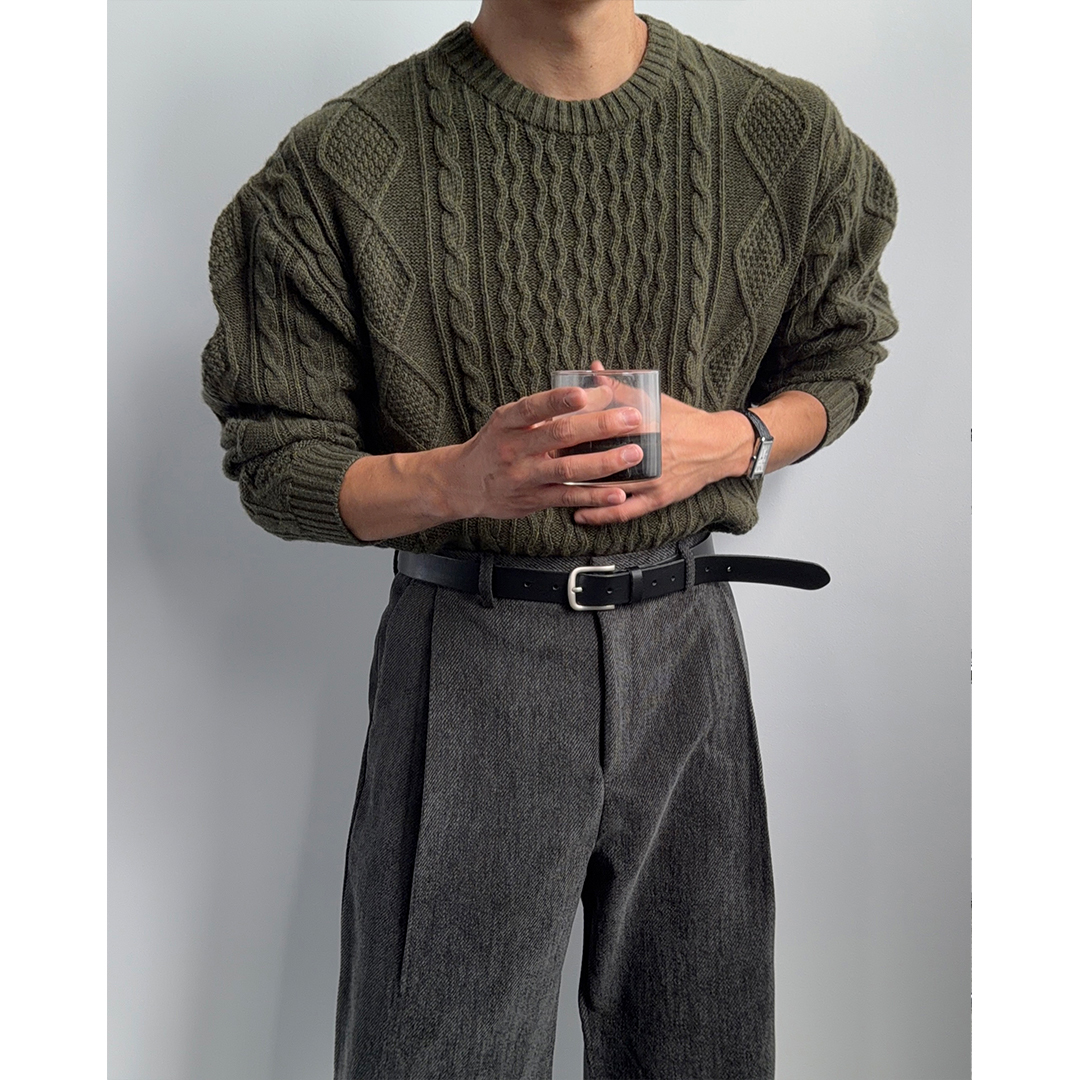 포근한 램스울과 은은한 컬러감, 피셔맨 패턴으로 고급스러운 무드를 완성한 니트입니다.