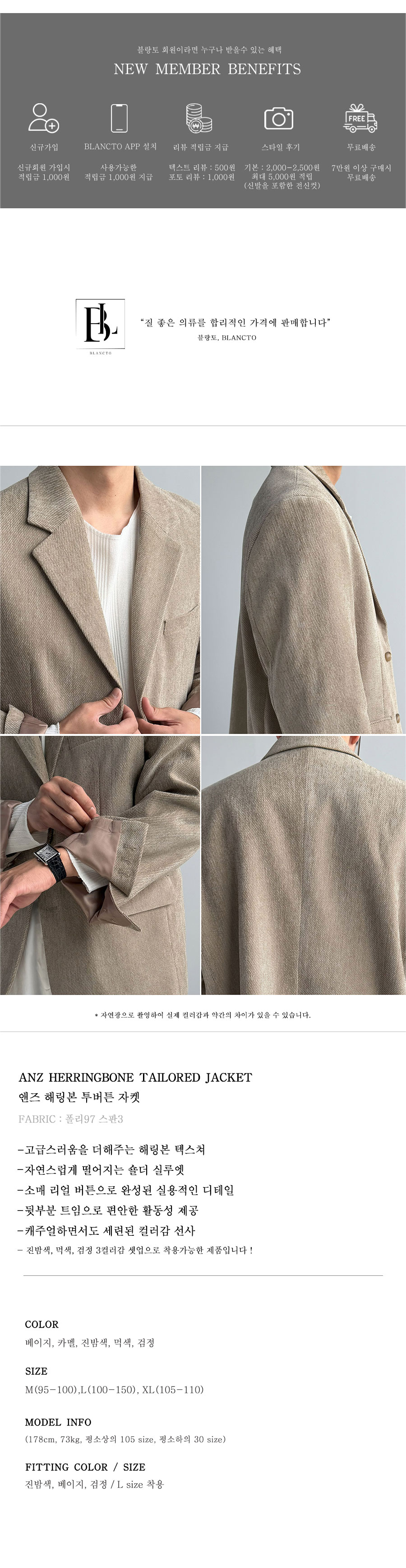 [먹색, 진밤색, 검정 셋업가능]프리미엄 해링본 패턴으로 클래식함을 더하고, 딥한 컬러감이 돋보이는 자켓입니다.