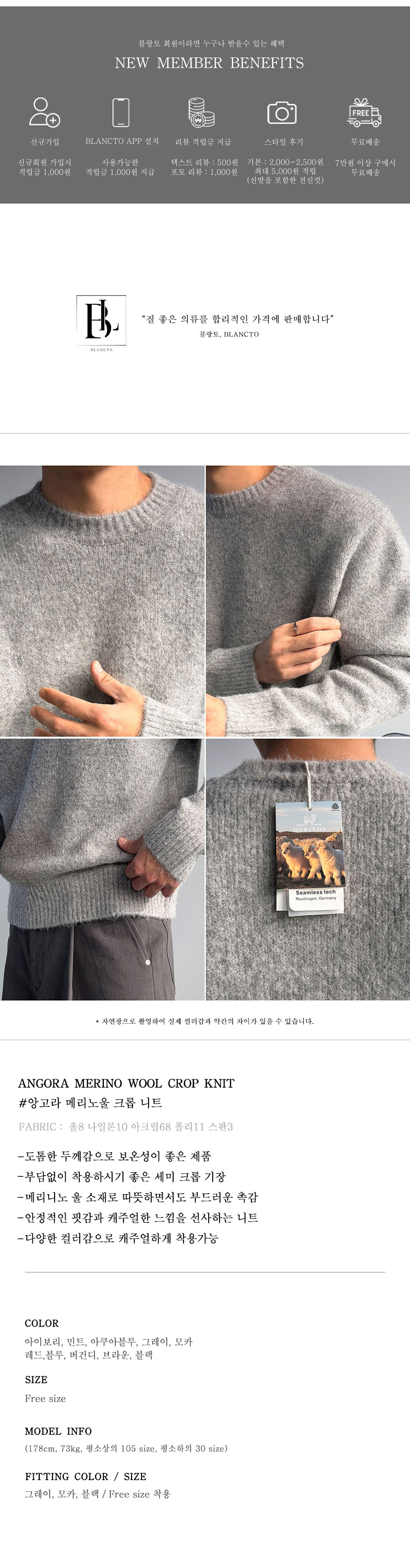 도톰한 두께감과 컬러감이 돋보이는, 부담 없는 세미 크롭 라운드 니트입니다.