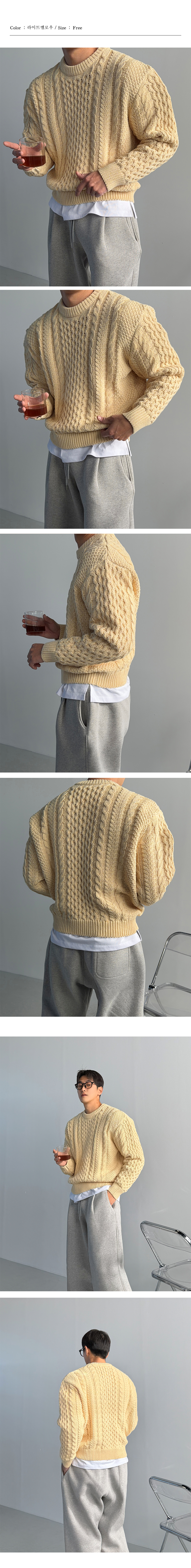 도톰한 짜임이 돋보이는 헤비 케이블 니트로, 탄탄한 조직감이 볼륨감 있는 실루엣을 연출해주는 제품입니다.