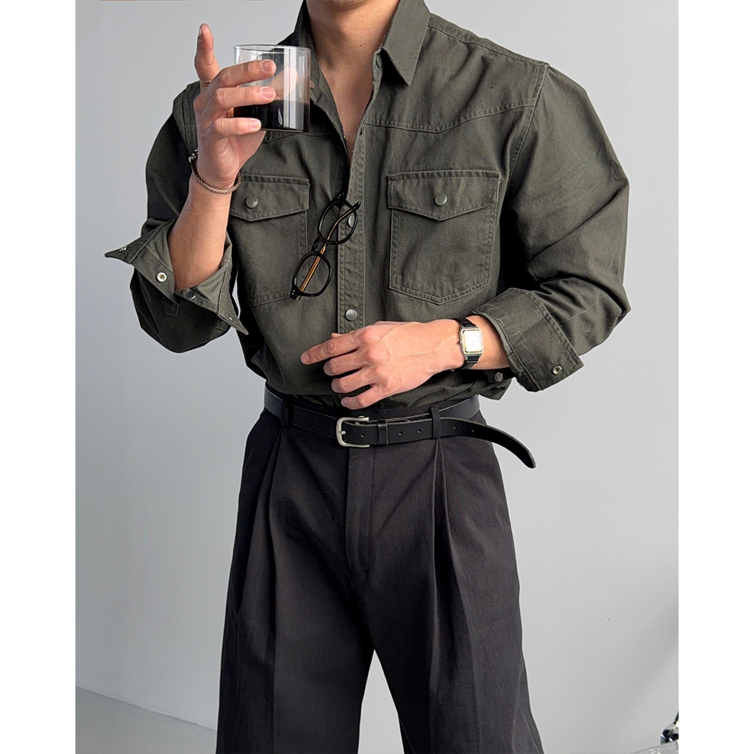 웨스턴 디테일이 돋보여 남성적인 무드를 완성하며, 스냅 버튼 디테일로 실용성까지 갖춘 셔츠입니다.