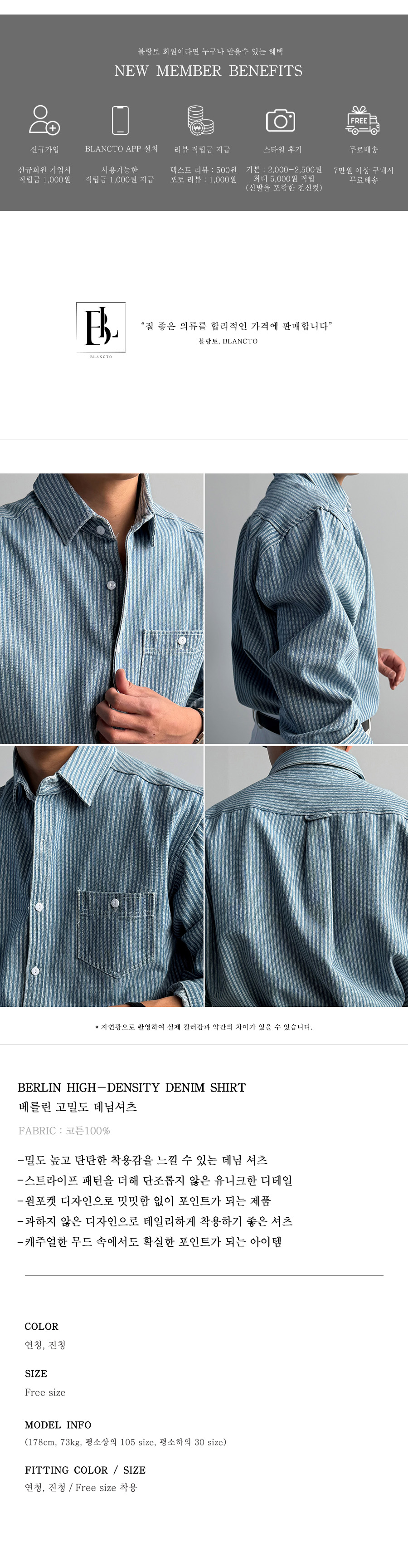 베를린 고밀도 데님셔츠 2color