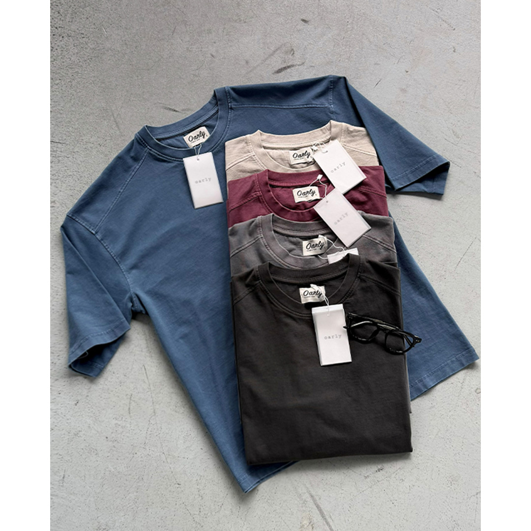 어깨 절개 디테일과 탄탄한 원단감, 피그먼트 워싱 특유의 빈티지한 색감이 돋보이는 반팔 티셔츠입니다.