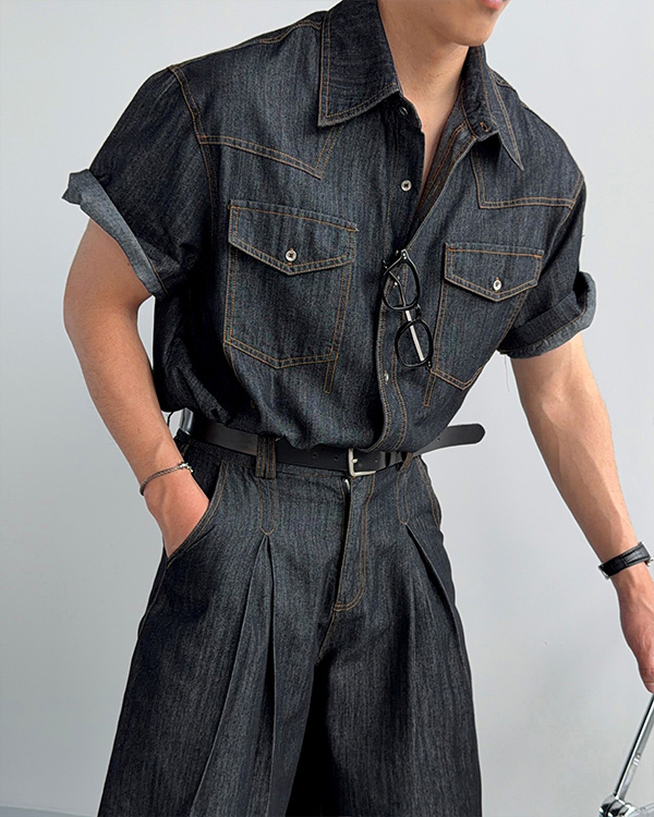 • 웨스턴 디테일이 돋보여 남성적인 무드를 완성하며, 스냅 버튼 디테일로 실용성까지 갖춘 셔츠입니다.