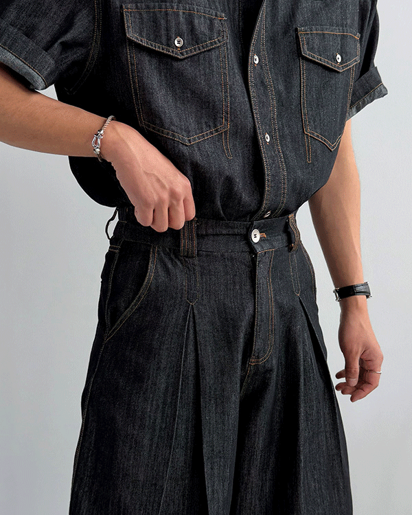• 탄탄한 원단에 자연스러운 워싱감과 포켓 디테일을 더해 유니크한 실루엣을 완성한 투웨이 데님 자켓입니다.