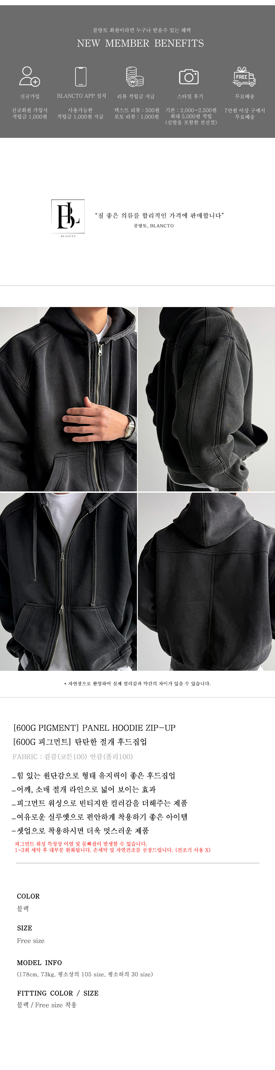 탄탄함과 디테일이 예쁘게 들어간 제품이며, 편안하게 입기 좋은 후드집업 입니다.