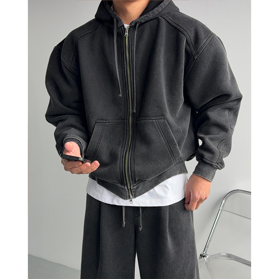 [600g 피그먼트] 탄탄한 절개 후드집업 1color