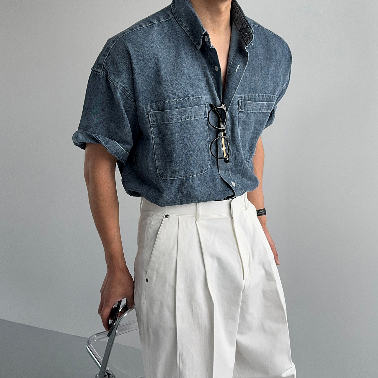 #퍼티그 린넨 데님 반팔셔츠 3color
