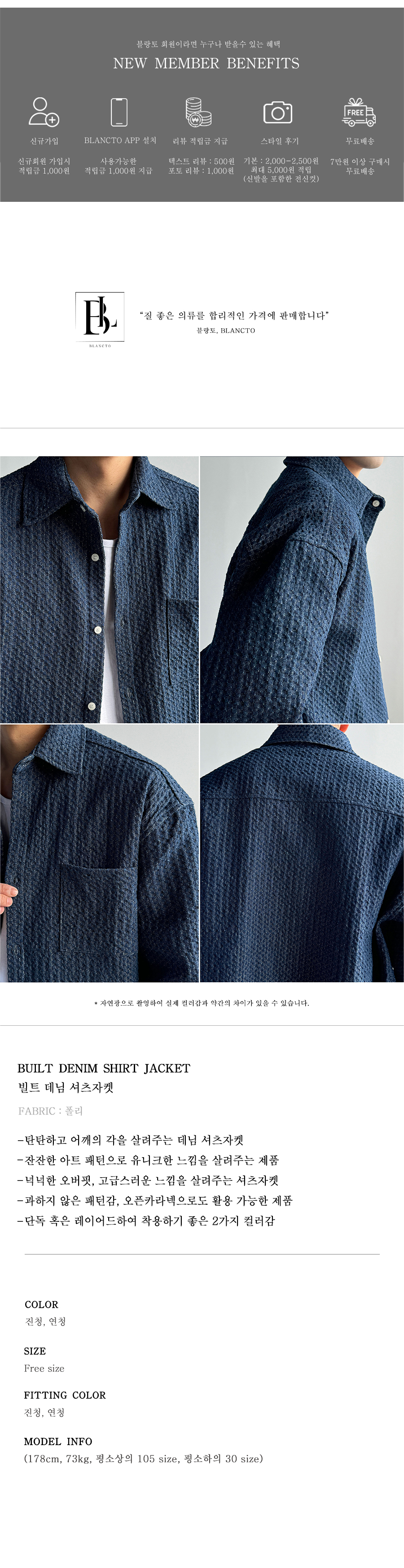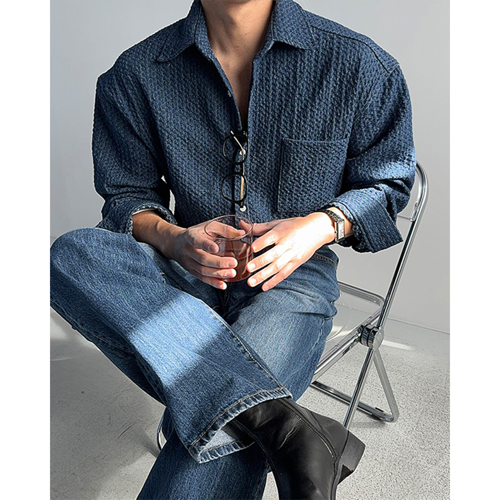 프리미엄 데님 원단. 입체적인 패턴감과 어깡핏으로 남성적인 느낌을 주는 셔츠자켓입니다.
