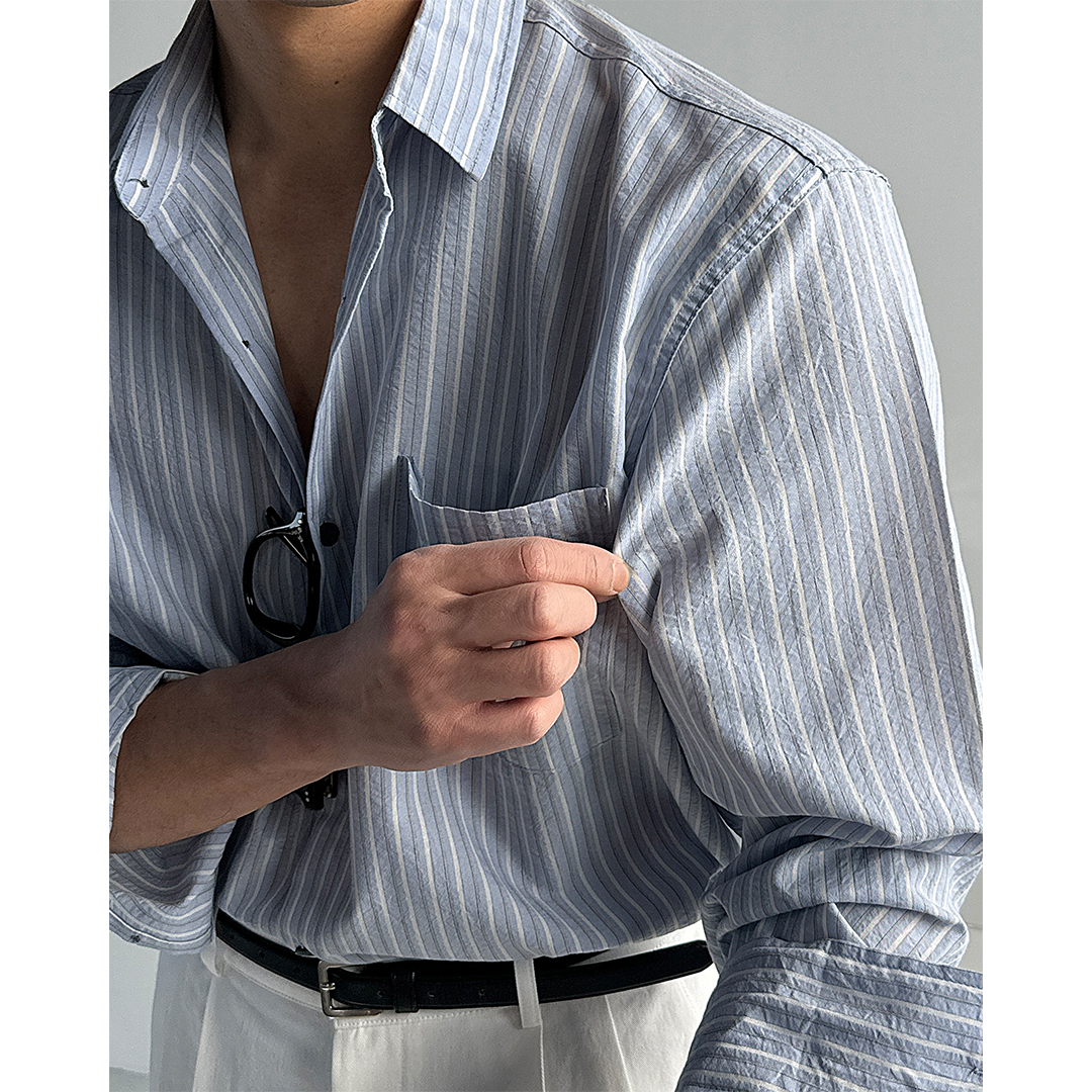 핀터레스트 감성이 느껴지며, 컬러감과 핏 감이 너무 이쁜 스트라이프 셔츠.