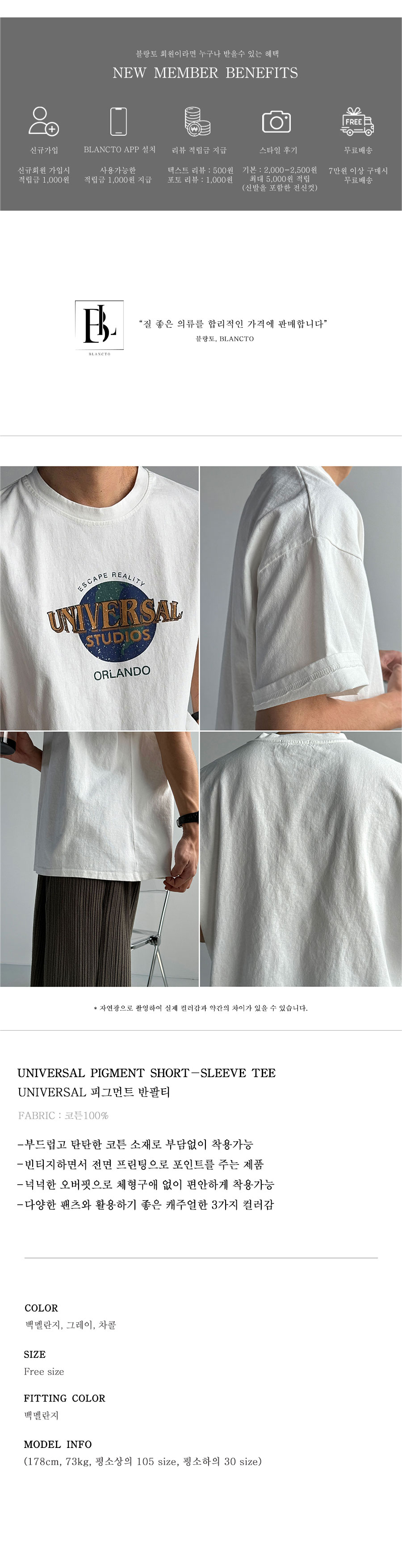Universal 피그먼트 반팔티 3color
