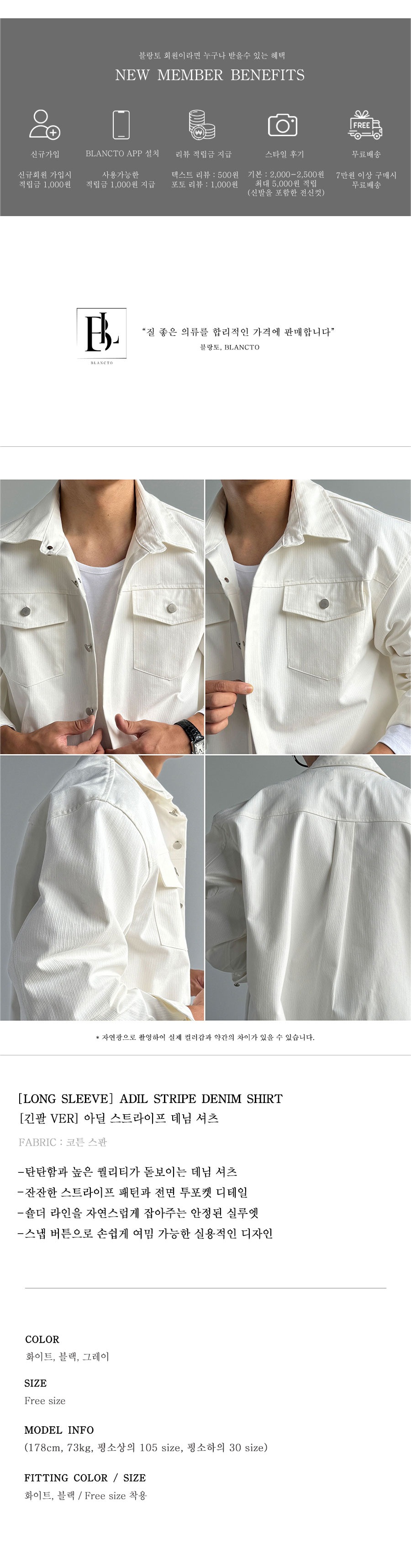 [긴팔 ver]아딜 스트라이프 데님 셔츠 3color