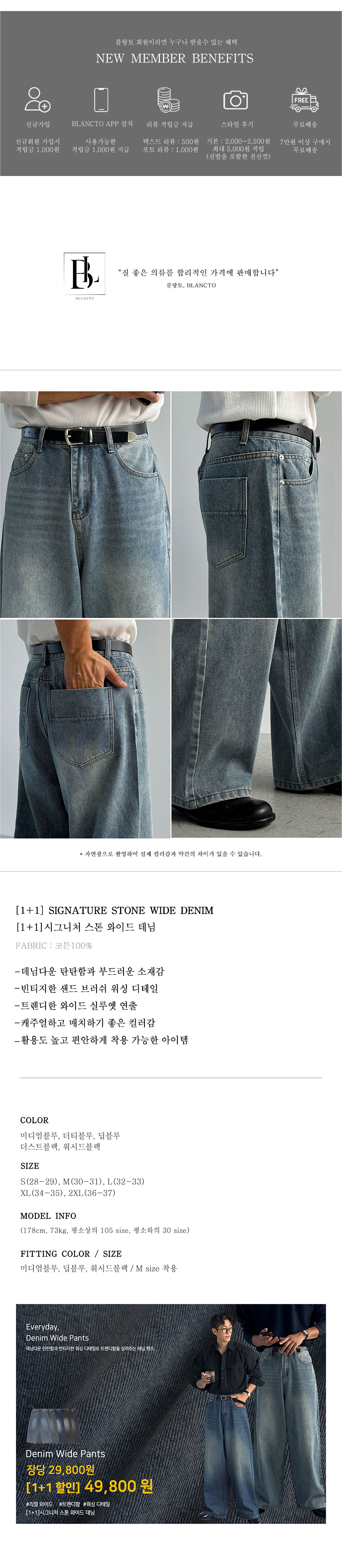 [1+1 할인]시그니처 스톤 와이드 데님 5color