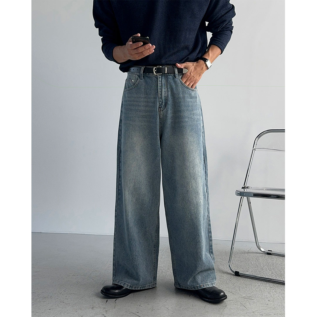 데님다운 탄탄함과 빈티지한 워싱 디테일로 트렌디함을 살려주는 데님 팬츠.