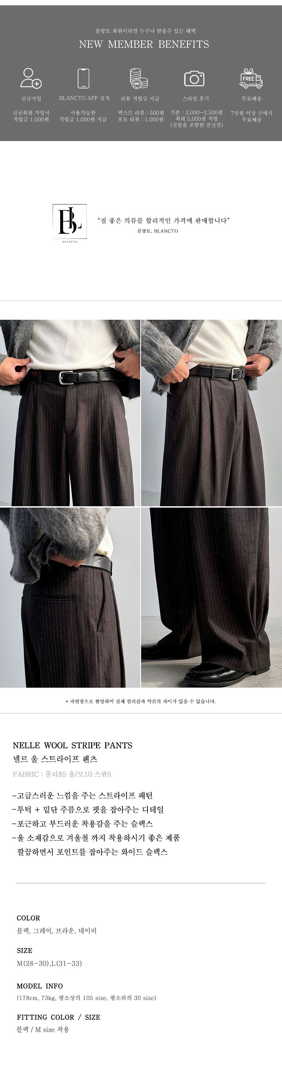 겨울까지 착용하시기 좋은 울 소재감과 유니크한 디테일이 가득 담긴 스트라이프 팬츠입니다.