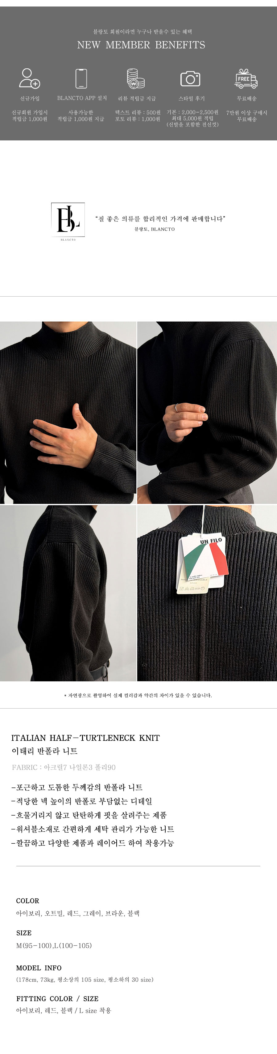 핏감, 도톰한 넥라인, 쫀쫀함까지 뭐 하나 빠짐없이 퀄리티 좋은 반폴라 니트로, 이너웨어로 강추드립니다.