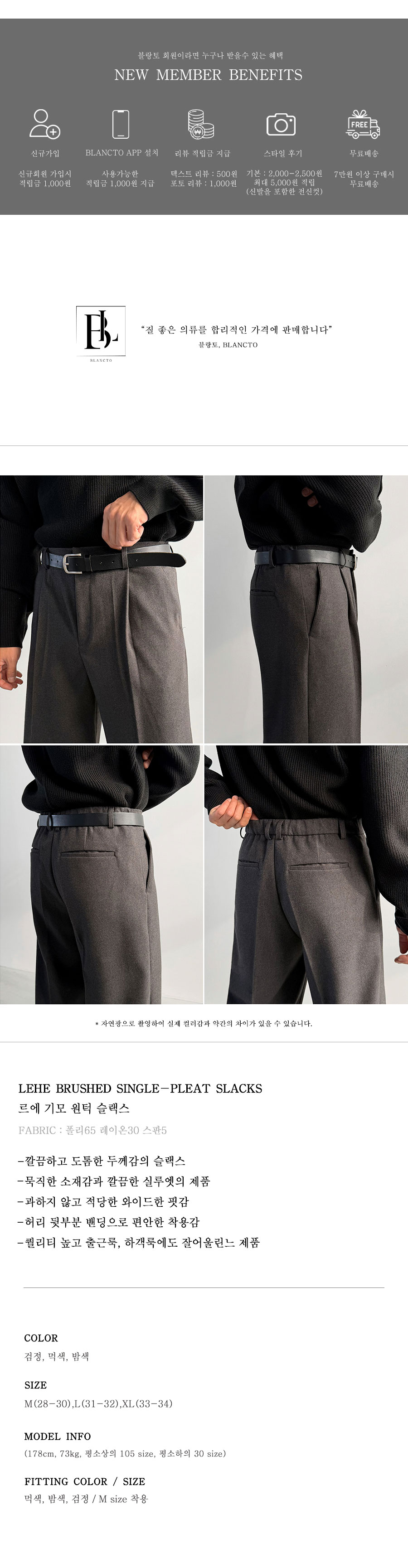 르에 기모 원턱 슬랙스 3color