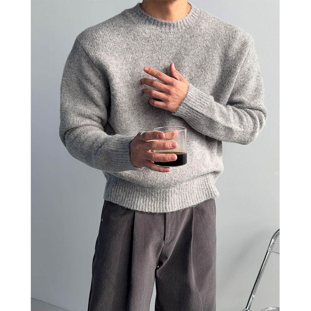 도톰한 두께감과 컬러감이 돋보이는, 부담 없는 세미 크롭 라운드 니트입니다.