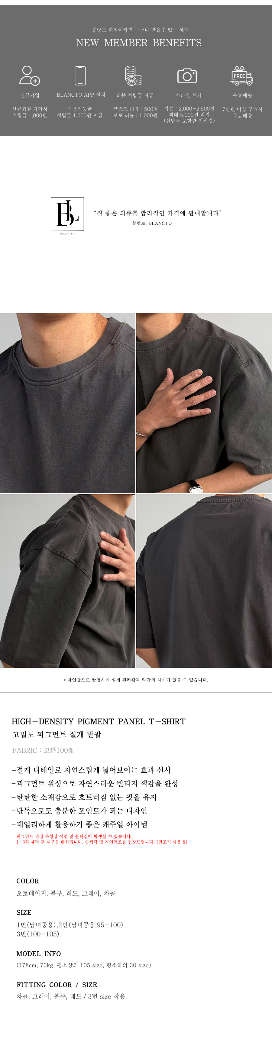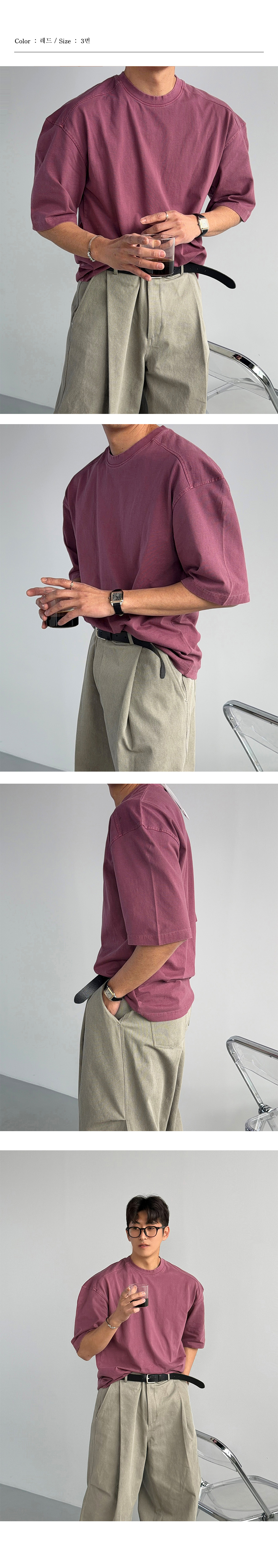 고밀도 피그먼트 절개 반팔 5color