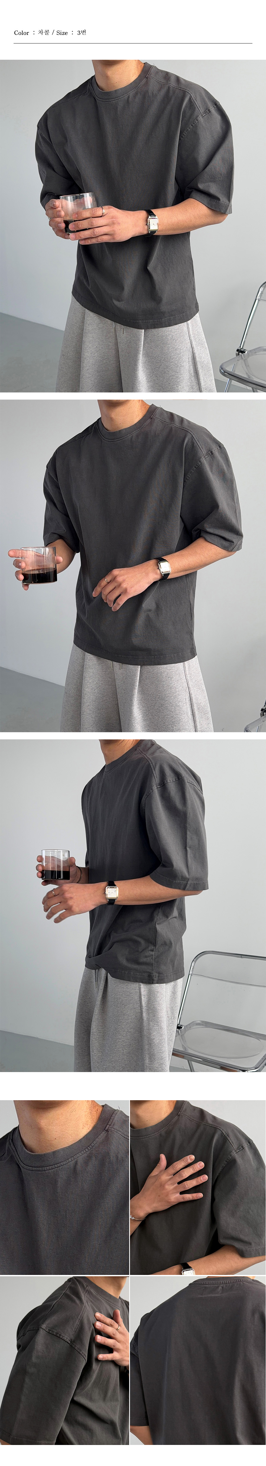 어깨 절개 디테일과 탄탄한 원단감, 피그먼트 워싱 특유의 빈티지한 색감이 돋보이는 반팔 티셔츠입니다.