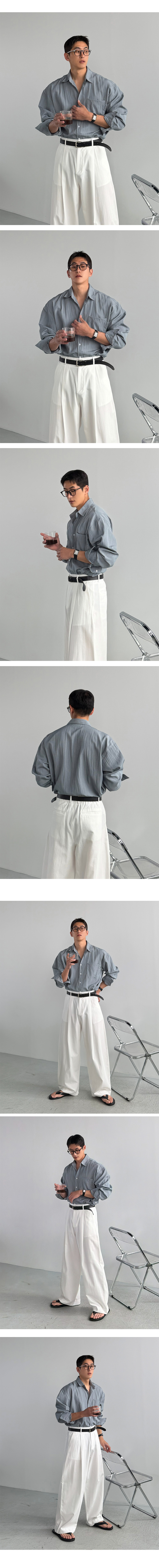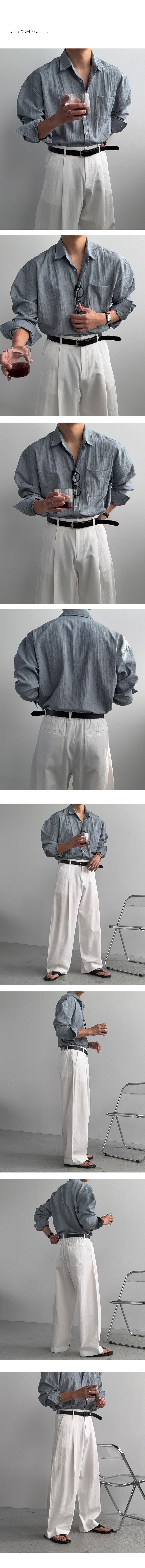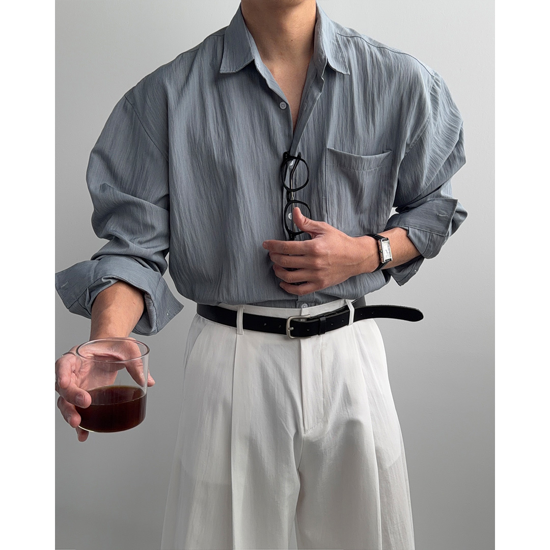 세로 보카시 텍스처와 톤다운 컬러로 시원하면서도 고급스러운 무드를 완성하는 셔츠