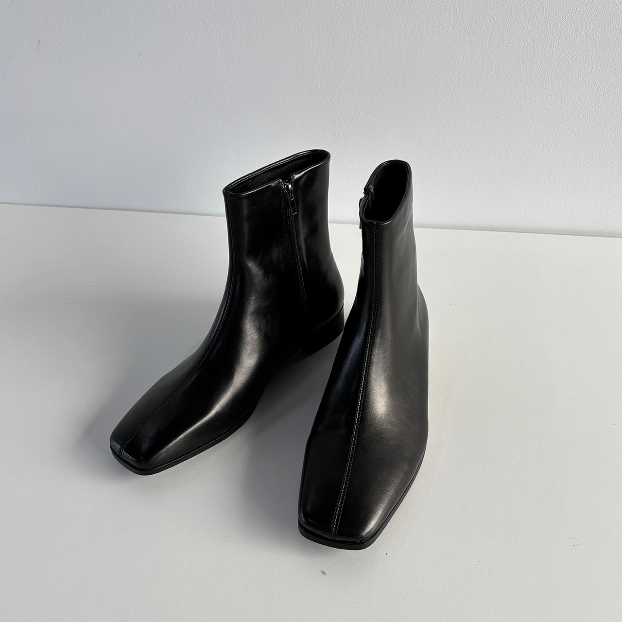 커팅 디테일로 포인트, 고급 수제화 느낌의 레더 첼시 부츠입니다.